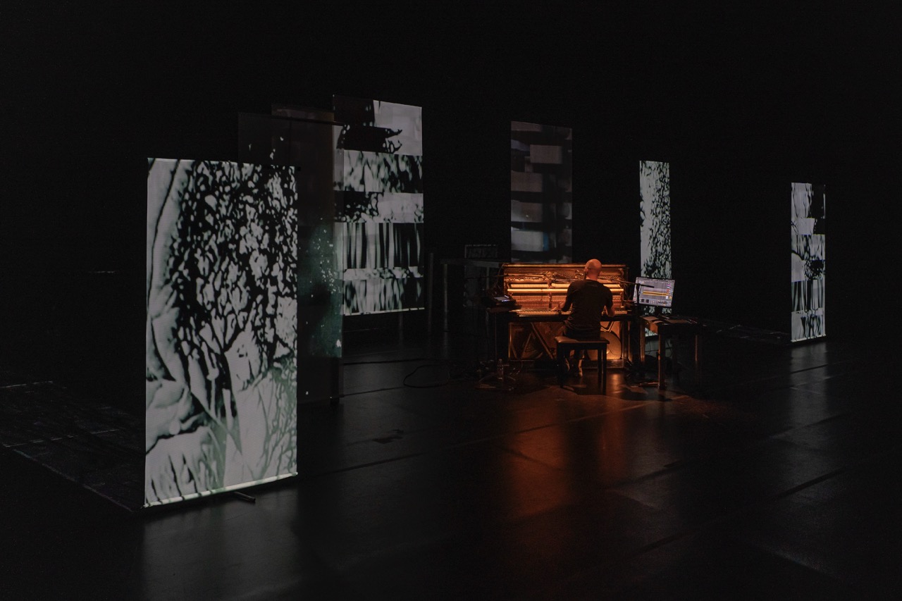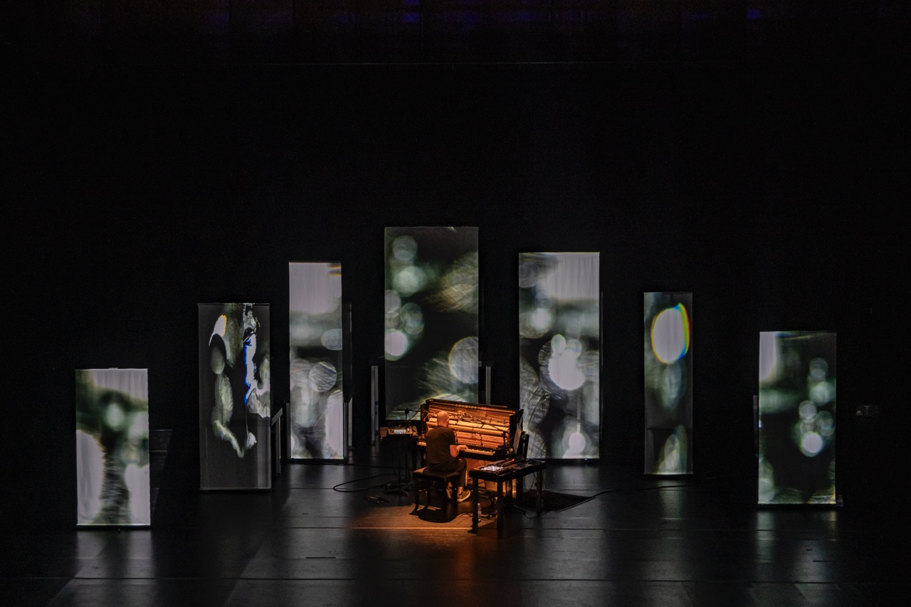 For this project, I developed the visual and spatial concept, including the stage design, the video projections, and the live video programming. My work shaped the visual identity and temporal rhythm of the performance, creating a scenographic dialogue between light, moving image, and the sonic landscape.